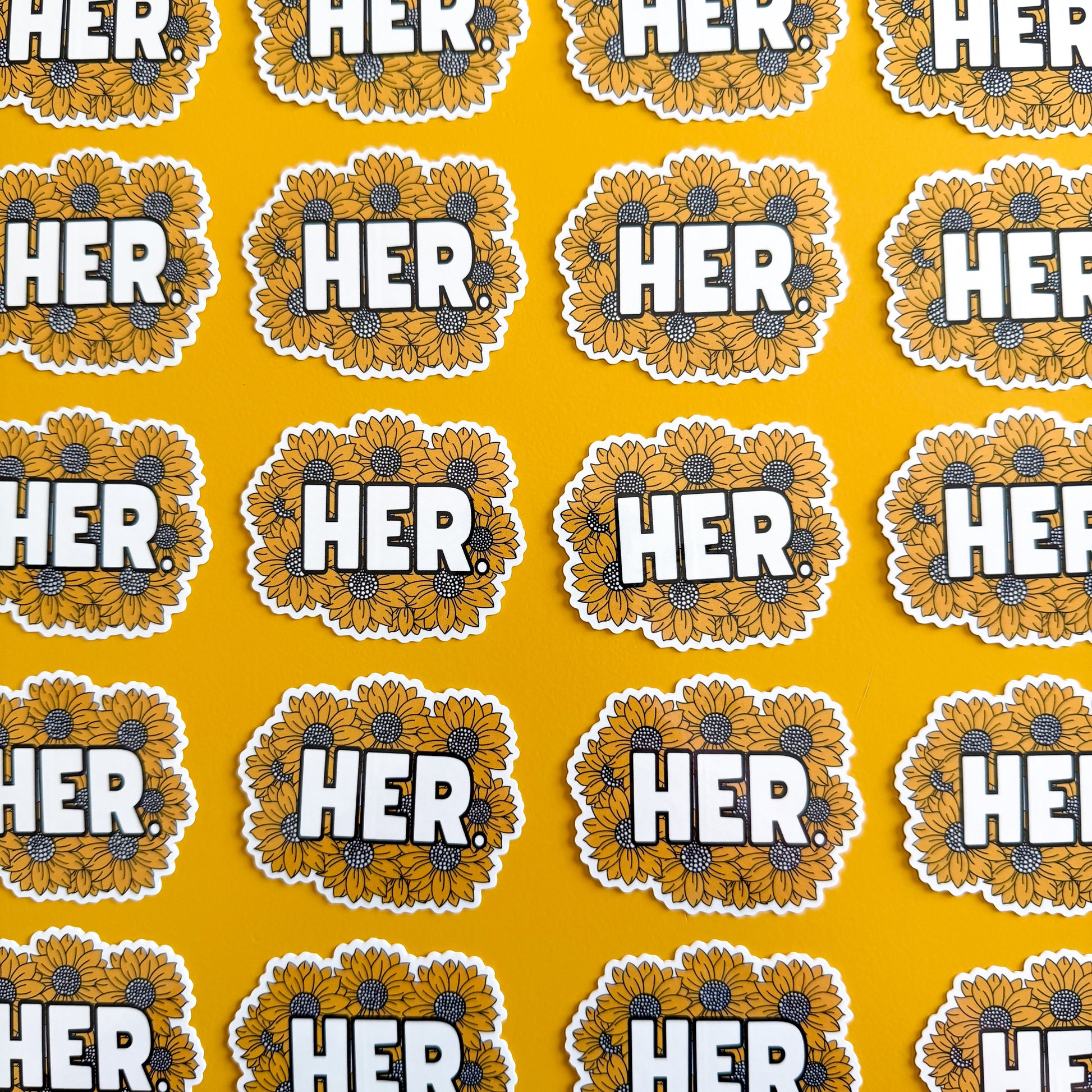 Celebrate the heart of the game with this HER Hockey Sticker, featuring the word “HER.” surrounded by blooming sunflowers in a warm gold and cream color palette. Inspired by strength, growth, and the undeniable presence of women in hockey, this design is both bold and beautifully symbolic—just like the community it represents.